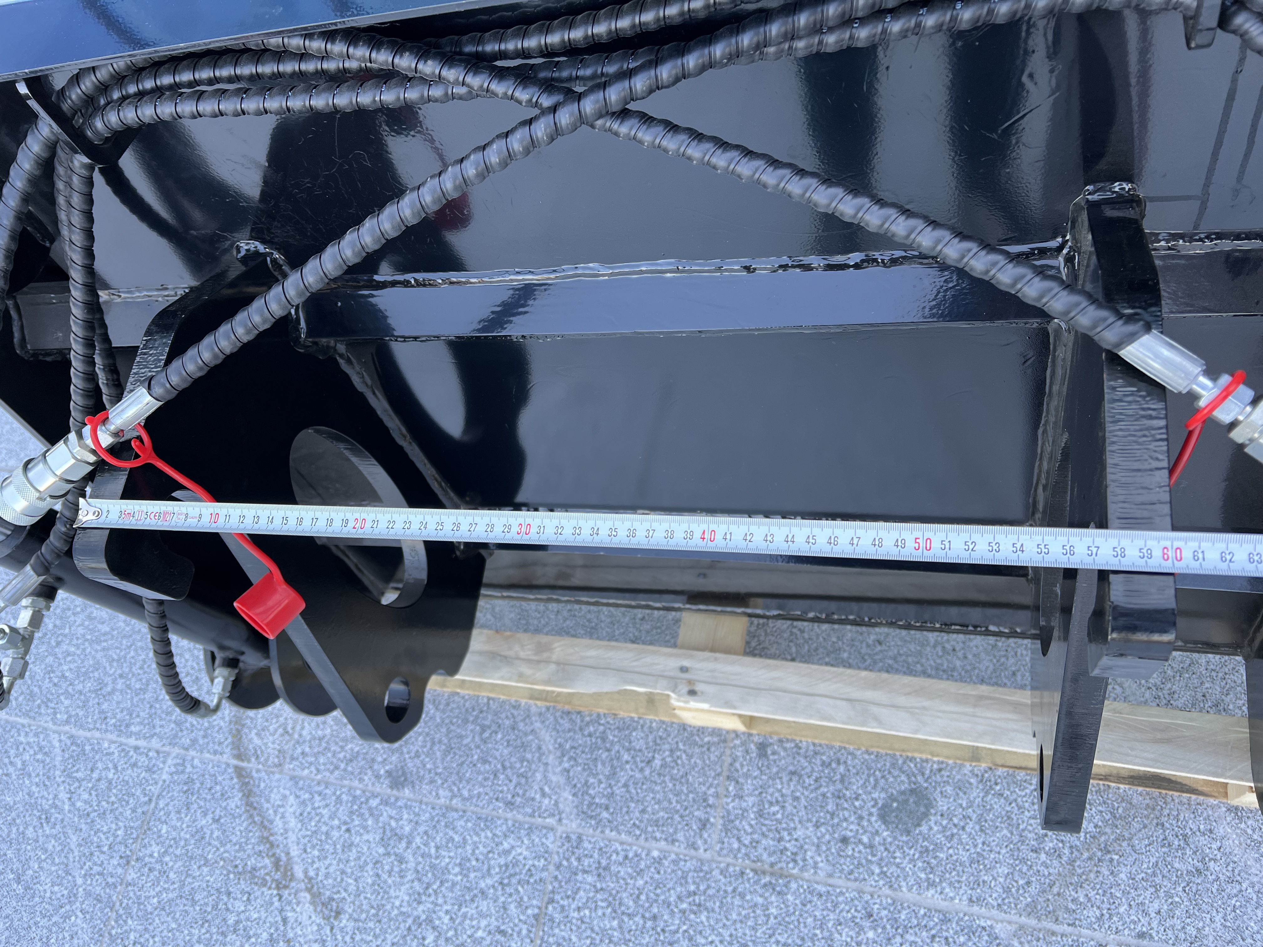 Die Maße der Mehrzweckschaufel sind gut durchdacht, um eine optimale Leistung zu gewährleisten. Der Breitenabstand zwischen den Aufhängungen beträgt 60 cm, was eine stabile und ausgewogene Lastverteilung ermöglicht. Der Lochdurchmesser beträgt 4,5 cm, was eine effiziente Entleerung des Schüttguts gewährleistet. Die breite Schaufel vorne misst 112 cm und bietet eine großzügige Aufnahmekapazität. Die Aufhängung ist 4 cm breit und 40 cm hoch, was eine zuverlässige Befestigung am Hoflader gewährleistet.
